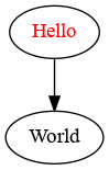 digraph G {Hello[fontcolor="red"]; Hello->World}