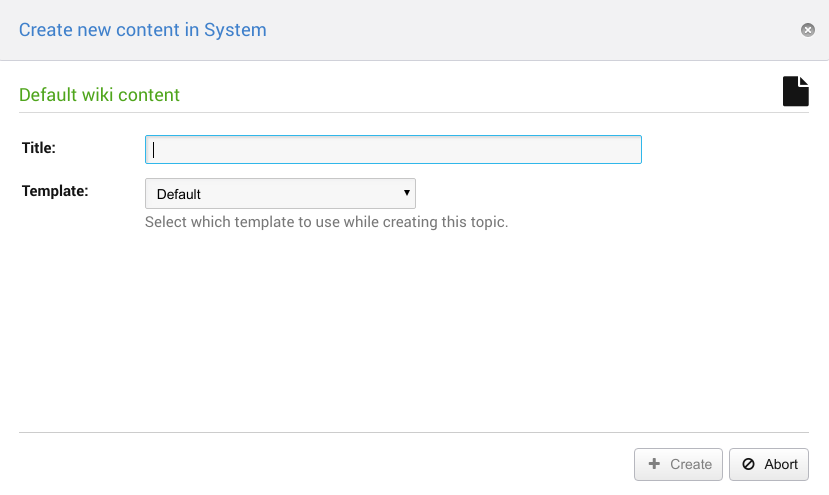 NatSkin TopicCreator is a unified way to create topics in your wiki. It especially is tailored towards the